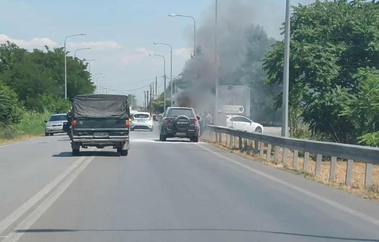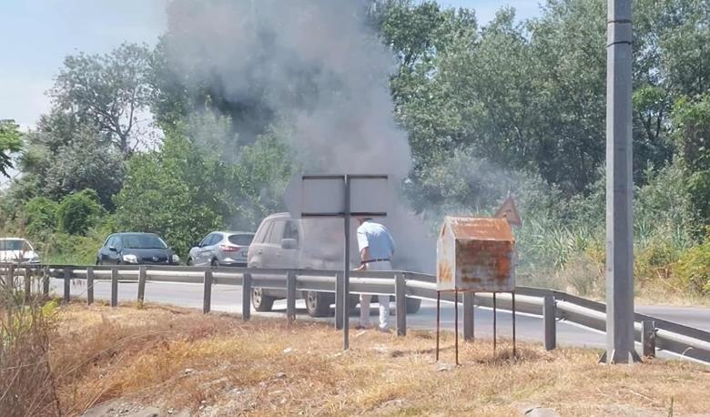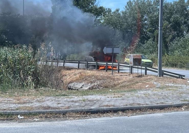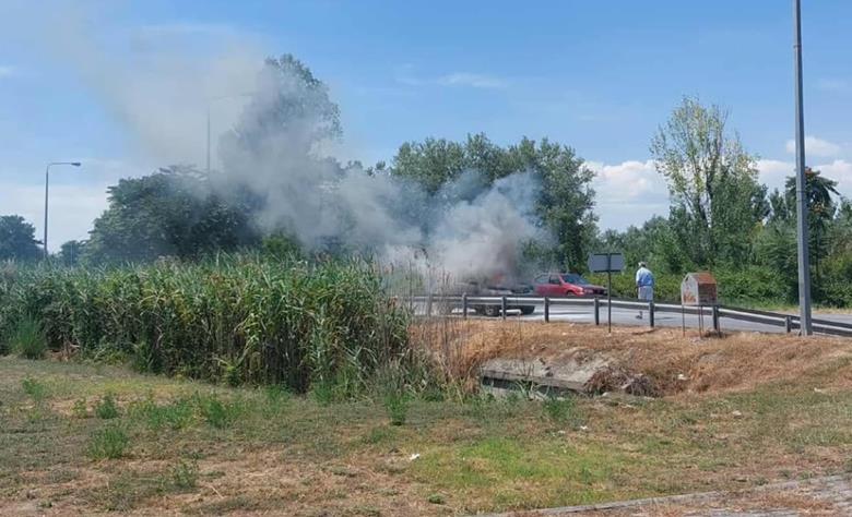 Φωτιά ξέσπασε σε αυτοκίνητο που κινούνταν στην ΠΕΟ Αλεξάνδρειας Κατερίνης λίγο έξω από το Νησέλι.