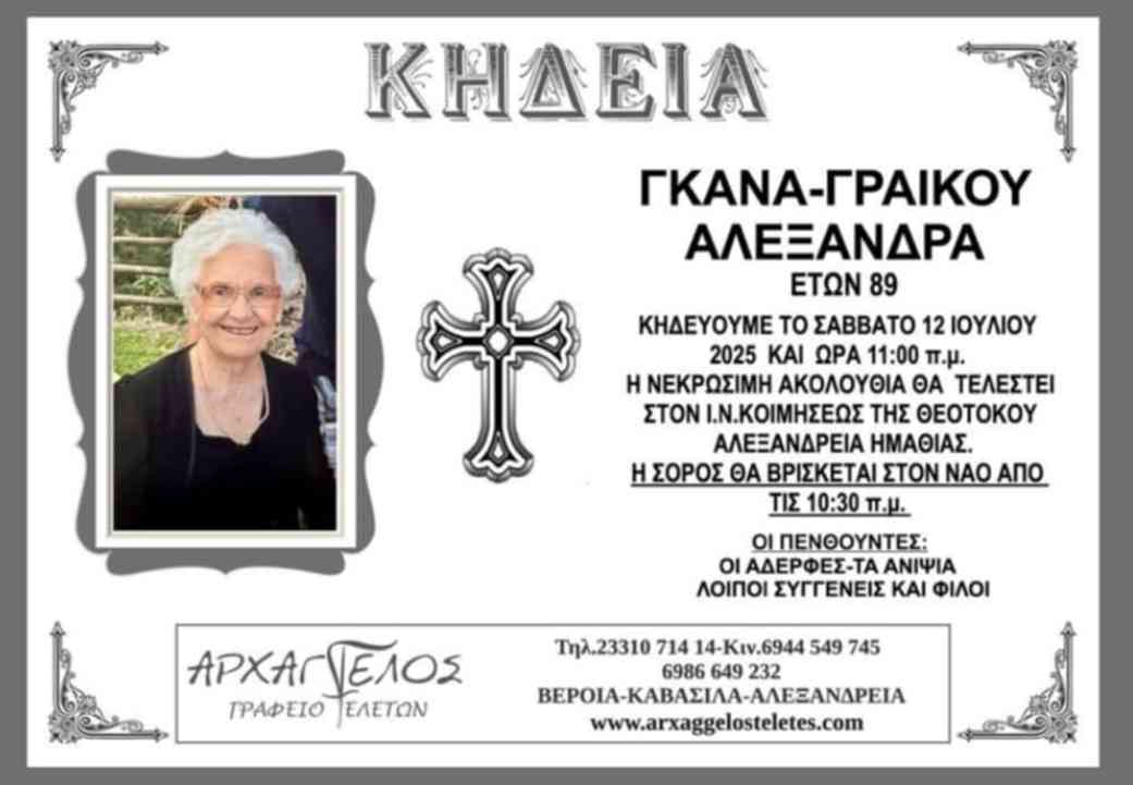 Η κηδεία της Γκάνα Γραικού Αλεξάνδρας το Σάββατο 12 Ιουλίου 2025 στην Αλεξάνδρεια.