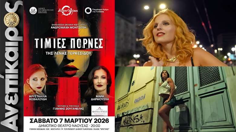 Συνεχίζεται με γρήγορους ρυθμούς η προπώληση των εισιτηρίων της θεατρικής παράστασης «Τίμιες Πόρνες» της Λένας Τερκεσίδου που διοργανώνει ο Δήμος Ηρωικής Πόλης Νάουσας το Σάββατο 7 Μαρτίου 2026 και ώρα 20:00 στο Δημοτικό Θέατρο Νάουσας «Μίκης Θεοδωράκης» με αφορμή τον εορτασμό της Παγκόσμιας Ημέρας της Γυναίκας (8 Μαρτίου).