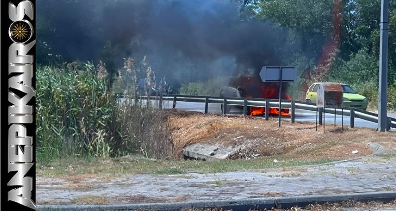 Φωτιά ξέσπασε σε αυτοκίνητο που κινούνταν στην ΠΕΟ Αλεξάνδρειας Κατερίνης λίγο έξω από το Νησέλι.