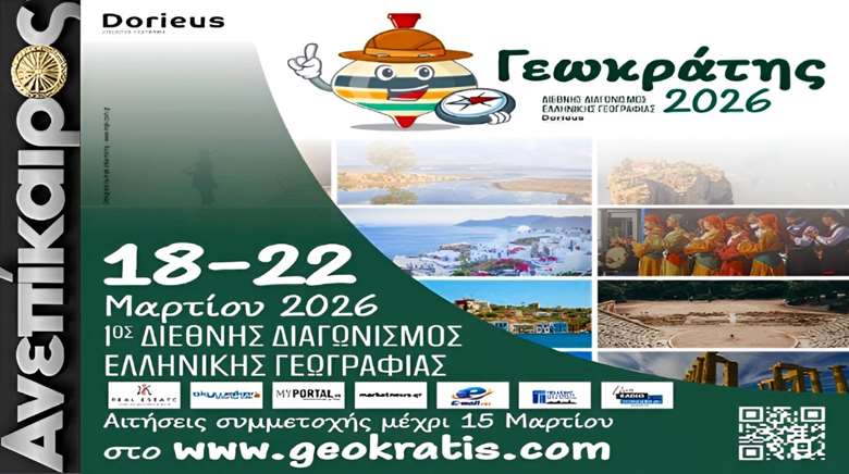 Οι εγγραφές για τον 1ο Διεθνή Διαγωνισμό Ελληνικής Γεωγραφίας «Γεωκράτης 2026» έχουν ήδη ξεκινήσει και η ανταπόκριση από την Ελλάδα και το εξωτερικό είναι εντυπωσιακή. Η Dorieus Creative Company προσκαλεί όλους τους Έλληνες μαθητές, φοιτητές και λάτρεις της γεωγραφίας να δηλώσουν συμμετοχή στην κορυφαία ψηφιακή αναμέτρηση της χρονιάς.