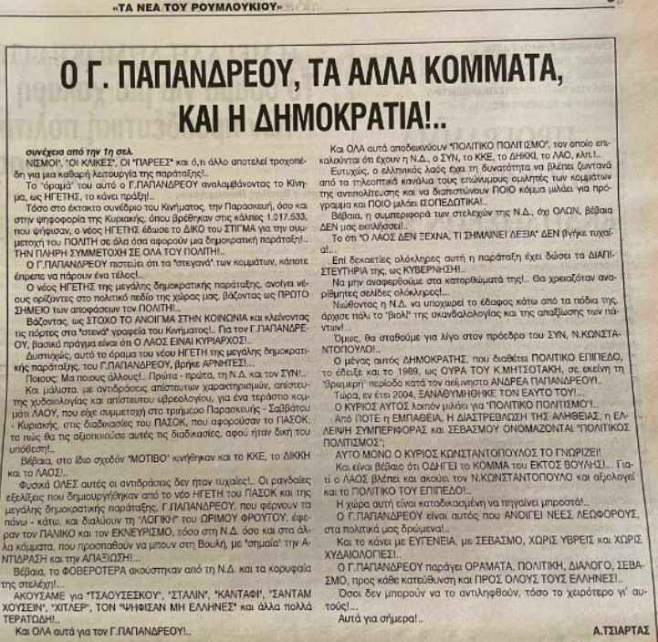 ΑΠΑΓΟΡΕΥΕΤΑΙ η αναδημοσίευση, η αναπαραγωγή, ολική, μερική ή περιληπτική, ή κατά παράφραση, ή διασκευή απόδοση του περιεχομένου της ηλεκτρονικής αυτής δημοσίευσης, με οποιονδήποτε τρόπο, μηχανικό, ηλεκτρονικό, φωτοτυπικό, ηχογράφησης ή αλλο, χωρίς προηγούμενη γραπτή άδεια της κατόχου των πνευματικών δικαιωμάτων Ελευθερίας Τσιάρτα, σύμφωνα με τις διατάξεις του Νόμου 2121/1993, αντίστοιχων οδηγιών και αποφάσεων της ΕΕ και κανόνων Διεθνούς Δικαίου.