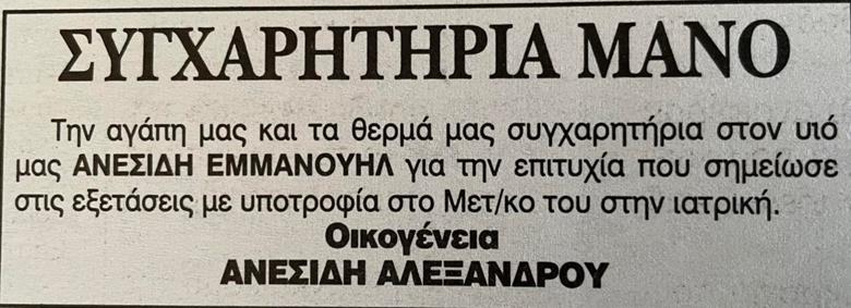 ΑΠΑΓΟΡΕΥΕΤΑΙ η αναδημοσίευση, η αναπαραγωγή, ολική, μερική ή περιληπτική, ή κατά παράφραση, ή διασκευή απόδοση του περιεχομένου της ηλεκτρονικής αυτής δημοσίευσης, με οποιονδήποτε τρόπο, μηχανικό, ηλεκτρονικό, φωτοτυπικό, ηχογράφησης ή αλλο, χωρίς προηγούμενη γραπτή άδεια της κατόχου των πνευματικών δικαιωμάτων Ελευθερίας Τσιάρτα, σύμφωνα με τις διατάξεις του Νόμου 2121/1993, αντίστοιχων οδηγιών και αποφάσεων της ΕΕ και κανόνων Διεθνούς Δικαίου.