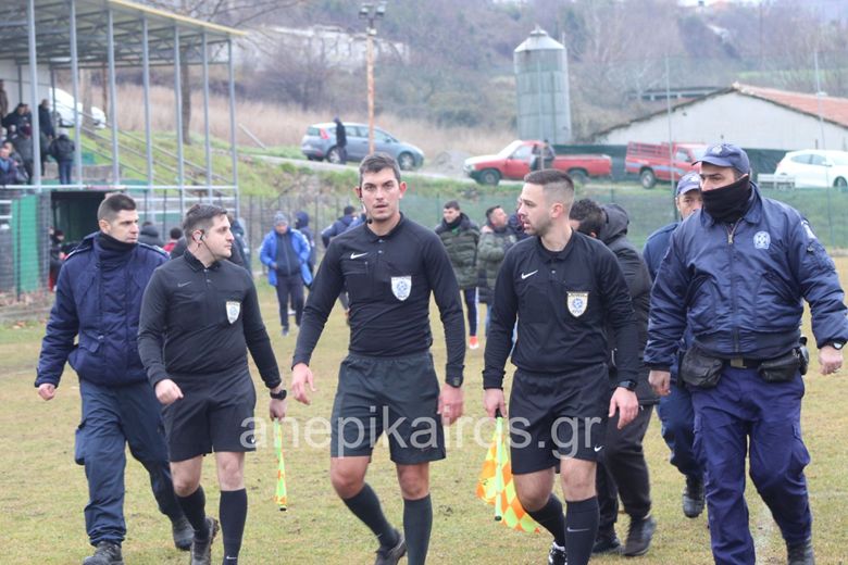 Σε ένα χειμωνιάτικο σκηνικό με πολύ κρύο και το χιονόνερο να εμφανίζεται κατά διαστήματα του 90λεπτου οι δύο ομάδες έπαιξαν για τη νίκη σε αγώνα που είχε τα χαρακτηριστικά του ντέρμπι.