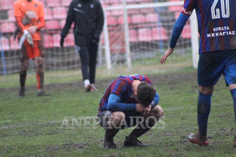 Η απάντηση όμως ήταν άμεση: στο 19’, μετά από κόρνερ και αναταραχή στην περιοχή, ο Μελιόπουλος με διαγώνιο σουτ έγραψε το 1-1 μέσα σε πανηγυρισμούς. Ο βαρύς αγωνιστικός χώρος δυσκόλεψε τις προσπάθειες και των δύο ομάδων, με το πρώτο μέρος να κλείνει ισόπαλο.