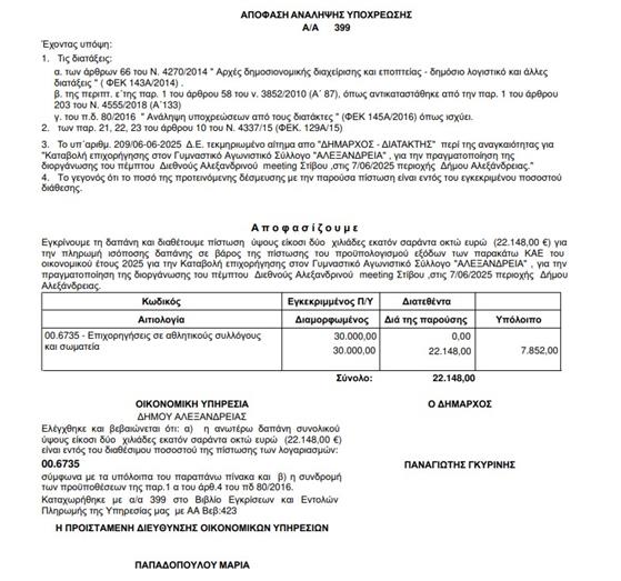 Σύμφωνα με την απόφαση που δημοσιεύτηκε από τον υπεύθυνο για τη διοργάνωση σύλλογο, τον ΓΑΣ Αλεξάνδρεια, το συνολικό κόστος ανήλθε στις 22.148€. Αυτό το ποσό καλύπτει τα λειτουργικά έξοδα ενός διεθνούς επιπέδου αγώνα, ο οποίος απαιτεί πόρους για τη φιλοξενία αθλητών, τις αμοιβές κριτών και προσωπικού, τον εξοπλισμό, και την προβολή.