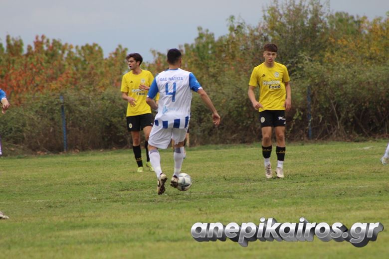 Οι «κυανόλευκοι» του Κώστα Συριτούδη μπήκαν αποφασισμένοι από το πρώτο λεπτό, επιβάλλοντας τον ρυθμό τους και κυριαρχώντας σε όλες τις γραμμές. Στο 25’, ο Μεληκιώτης άνοιξε το σκορ με όμορφη ενέργεια, ενώ δέκα λεπτά αργότερα ο Γκουλά ανέβασε τον δείκτη του σκορ στο 2-0, επιβεβαιώνοντας την ανωτερότητα της Νάουσας.