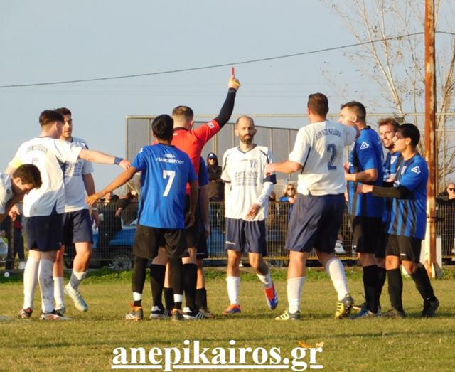 Η εικόνα του αγώνα αποτυπώνεται στις τρεις κόκκινες κάρτες μια για τους γηπεδούχους και δύο για την Δόξα και τις πολλές κίτρινες που μοίρασε ο διαιτητής για να μην ξεφύγει η κατάσταση.