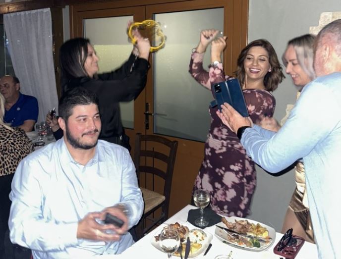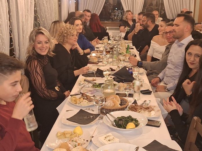 Η βραδιά κύλησε με πολύ τραγούδι, χορό και φυσικα φαγητό και ποτό.