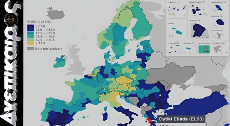 Σύμφωνα με τα στοιχεία της Eurostat για το 2024, η Ελλάδα παραμένει ανάμεσα στις χώρες με τα υψηλότερα ποσοστά κινδύνου φτώχειας ή κοινωνικού αποκλεισμού στην Ευρωπαϊκή Ένωση.
