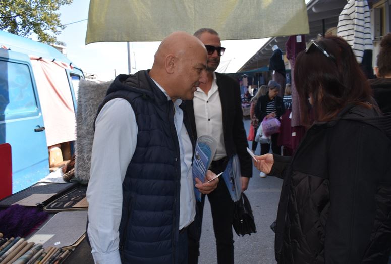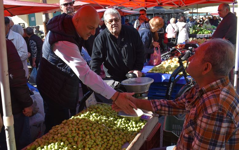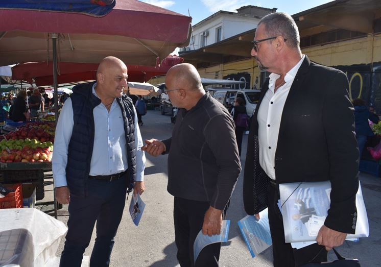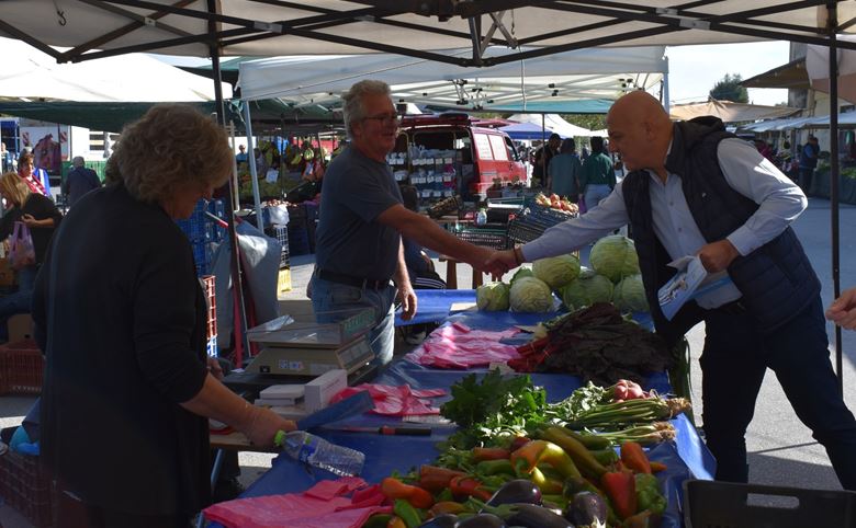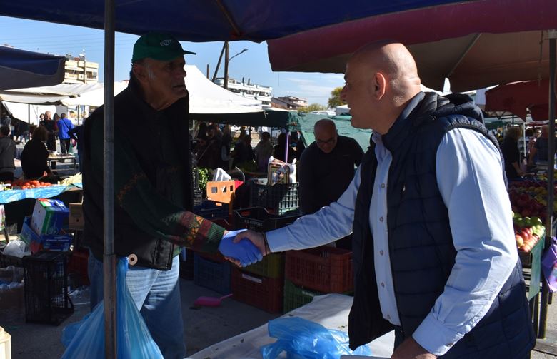 Η περιοδεία του κ. Κοτίδη ξεκίνησε από τη λαϊκή αγορά, όπου συνομίλησε με παραγωγούς, καταναλωτές και κατοίκους της περιοχής σε εγκάρδιο και ανοιχτό κλίμα. Οι συζητήσεις περιστράφηκαν γύρω από τις αυξήσεις στο κόστος ζωής, τις δυσκολίες της αγροτικής παραγωγής και την ανάγκη για στήριξη των μικρών παραγωγών.