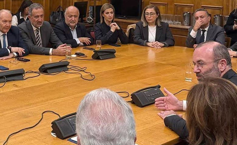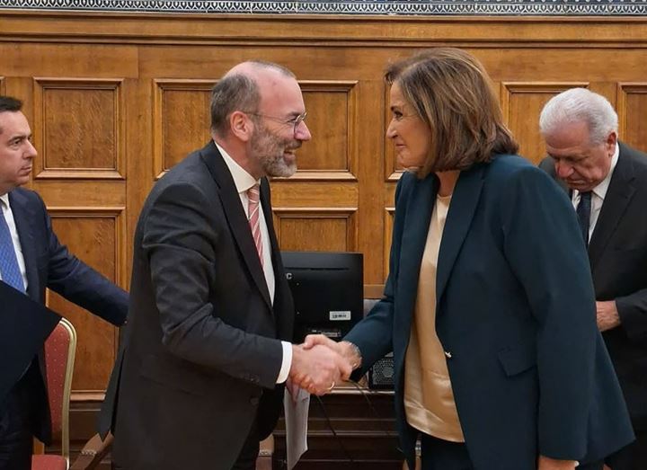 Σε ιδιαίτερα θερμό κλίμα πραγματοποιήθηκε η συνάντηση του Προέδρου της Επιτροπής Εθνικής Άμυνας και Εξωτερικών Υποθέσεων της Βουλής των Ελλήνων, κ. Ντόρας Μπακογιάννη, με τον Πρόεδρο του Ευρωπαϊκού Λαϊκού Κόμματος και της Κοινοβουλευτικής Ομάδας του στο Ευρωπαϊκό Κοινοβούλιο, κ. Μάνφρεντ Βέμπερ.
