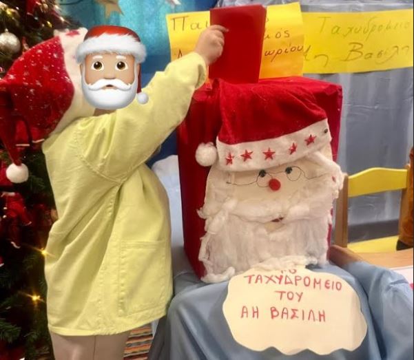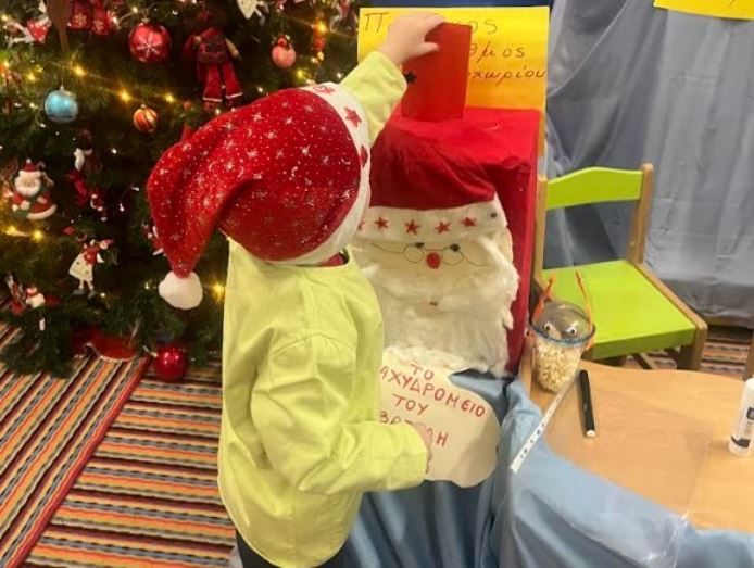 Στη συνέχεια γράψανε γράμμα στον Αη Βασίλη, φωτογραφήθηκαν ως χιονάνθρωποι και έκαναν μια ωραία Χριστουγεννιάτικη κατασκευή. Η αποκορύφωση ήταν ο ερχομός του Άη Βασίλη,ο οποίος ήρθε να παραλάβει τα γράμματα των μικρών μαθητών και φωτογραφήθηκε μαζί τους.