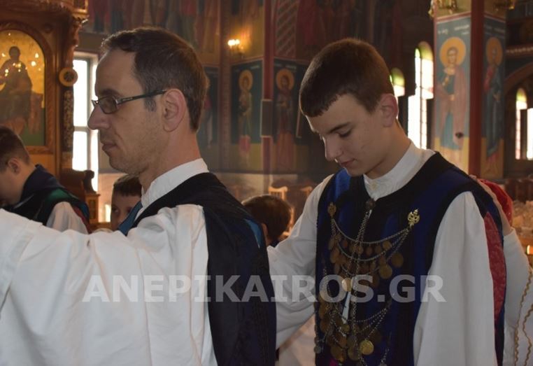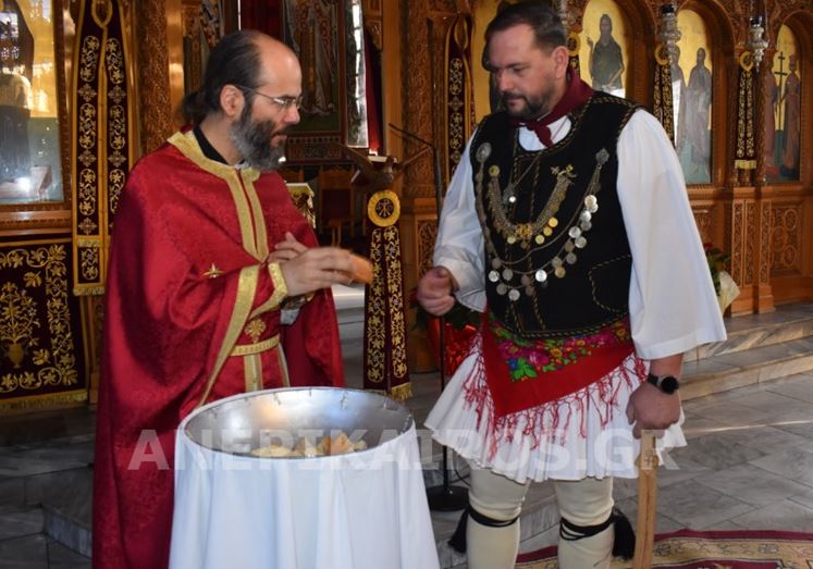 Με σεβασμό και κατάνυξη, οι Ρουγκατσάρηδες πέρασαν το κατώφλι του Ιερού Ναού Κοιμήσεως της Θεοτόκου, όπου ο πάτερ Βασίλειος τους υποδέχτηκε εγκάρδια. Η ευλογία του δεν ήταν μια τυπική πράξη· ήταν η επίσημη έναρξη του εθίμου, η πνευματική σφραγίδα που συνδέει το παλιό με το νέο, το λαϊκό με το ιερό, την παράδοση με τη σύγχρονη ζωή της πόλης.