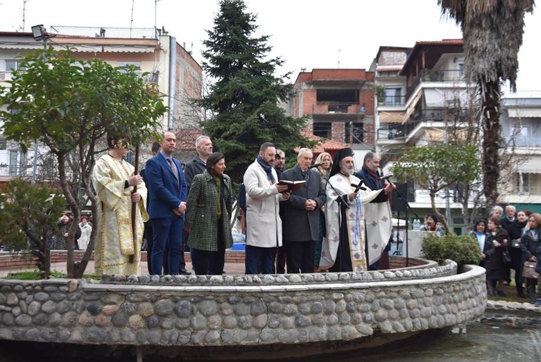 Οι εορταστικές εκδηλώσεις ξεκίνησαν στη Νάουσα με τη δοξολογία που τελέστηκε στον Ιερό Ναό της Μεταμόρφωσης του Σωτήρος και ακολούθως πραγματοποιήθηκε η τελετή του αγιασμού των υδάτων στο σιντριβάνι της Πλατείας Καρατάσου. Τον Τίμιο Σταυρό ανέσυρε ο μικρός Νίκος Τάνος, μέσα σε θερμό κλίμα και υπό το χειροκρότημα των παρευρισκομένων.