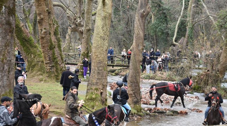 Στη συνέχεια, στον Άγιο Νικόλαο Νάουσας, πραγματοποιήθηκε η κατάδυση του Τιμίου Σταυρού προεξάρχοντος του Σεβασμιότατου Μητροπολίτη Βέροιας, Νάουσας και Καμπανίας κ. Παντελεήμονος, με τολμηρούς κολυμβητές να βουτούν στα παγωμένα νερά. Τον Τίμιο Σταυρό ανέσυρε ο Γιάννης Κασαπίδης, ενώ για μία ακόμη χρονιά ιδιαίτερο χρώμα και συμβολισμό στον εορτασμό των Θεοφανίων έδωσε ο Ιππικός Όμιλος Νάουσας, με τους ιππείς να εισέρχονται στο ποτάμι της Αράπιτσας μαζί με τα άλογά τους, προσφέροντας ένα μοναδικό θέαμα.