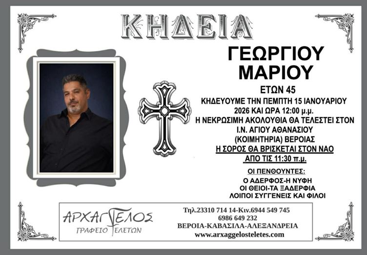 Η κηδεία του Γεωργίου Μάριου σήμερα Πέμπτη 15 Ιανουαρίου 2026.