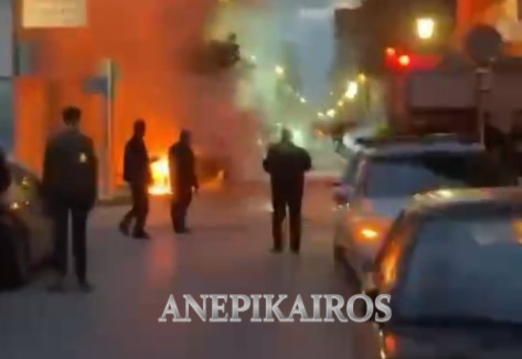 Κομμάτια από τις φλόγες και καύτρες πέφτουν σε σταθμευμένα αυτοκίνητα, δημιουργώντας επιπλέον κινδύνους και δυσκολεύοντας το έργο των πυροσβεστικών δυνάμεων που επιχειρούν στο σημείο.