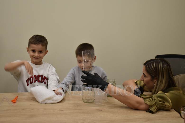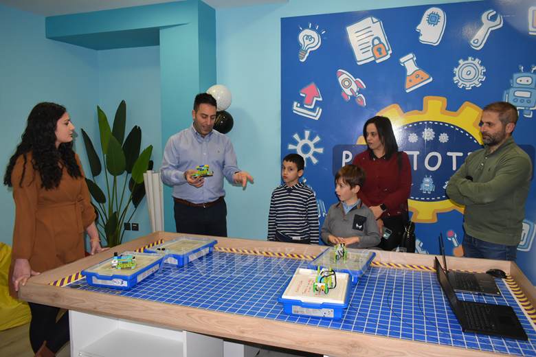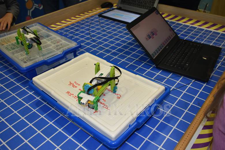 Ακολούθησε μια σύντομη αλλά εντυπωσιακή πρακτική επίδειξη: τα παιδιά, μαζί με τους εκπαιδευτικούς τους, παρουσίασαν μικρά δείγματα όσων μαθαίνουν μέσα στη χρονιά — από βασικές αρχές ρομποτικής μέχρι απλές αυτοματοποιημένες κατασκευές.