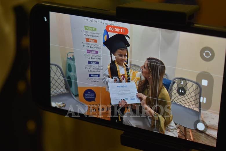 Οι μικροί μαθητές ανέβηκαν στη σκηνή με φανερή περηφάνια, ενώ οι γονείς τους χειροκροτούσαν συγκινημένοι για την προσπάθεια και την πρόοδό τους.