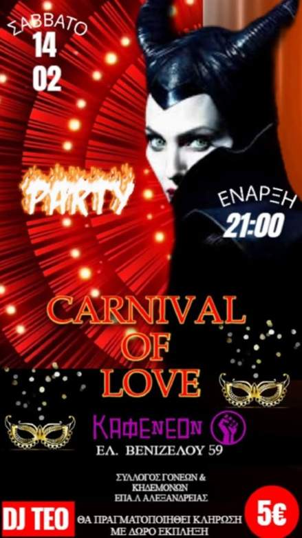 Σας προσκαλεί το Σάββατο 14/2 στις 21:00 στον ΚΑΦΕΝΕΟΝ (Ελευθερίου Βενιζέλου 59) σε ένα ξέφρενο《 Carnival of love 》party