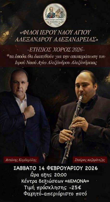 Οι φίλοι του ΙΝ Αγίου Αλεξάνδρου στην Αλεξάνδρεια διοργανώνουν ετήσιο χορό σήμερα Σάββατο 14 Φεβρουαρίου 2026