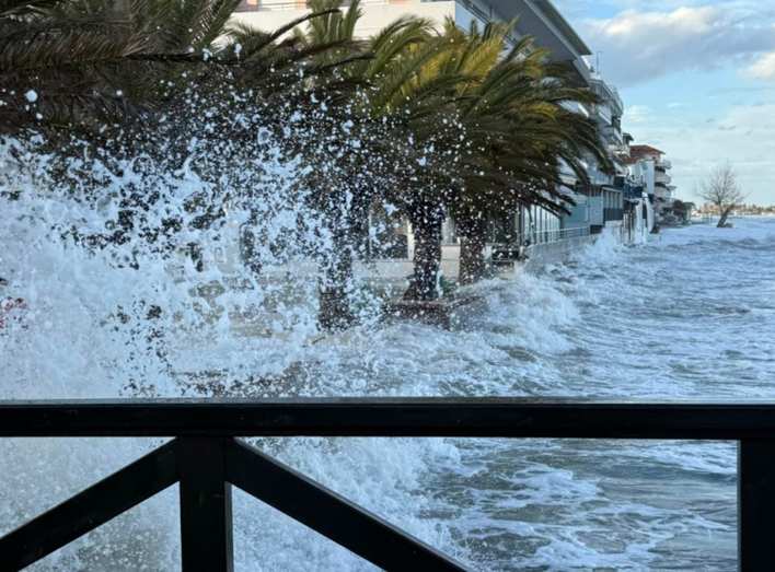 Τα κύματα που έφτασαν στις ακτές της Κατερίνης μετέφεραν μεγάλες μάζες νερού, προκαλώντας προσωρινή συσσώρευση και επιδεινώνοντας την κατάσταση.