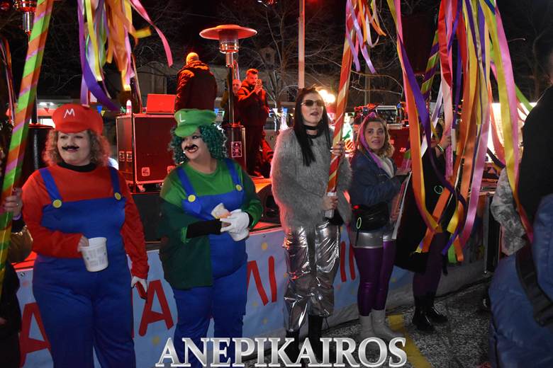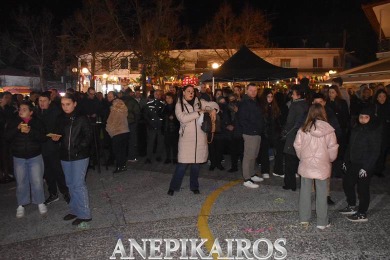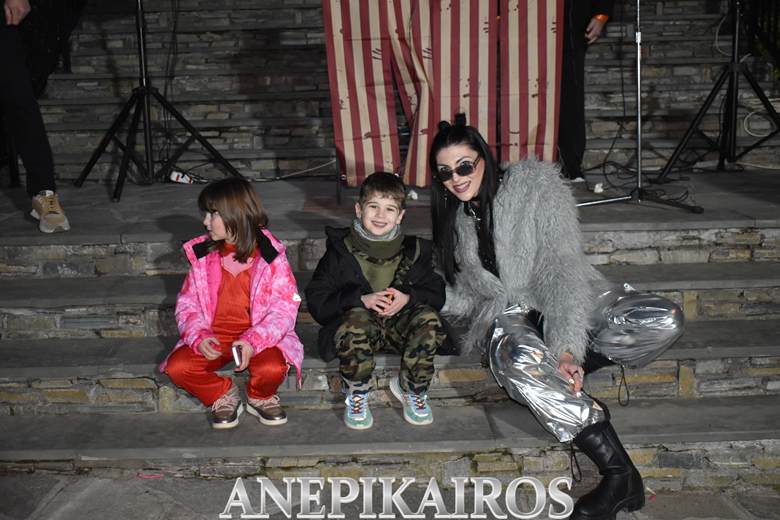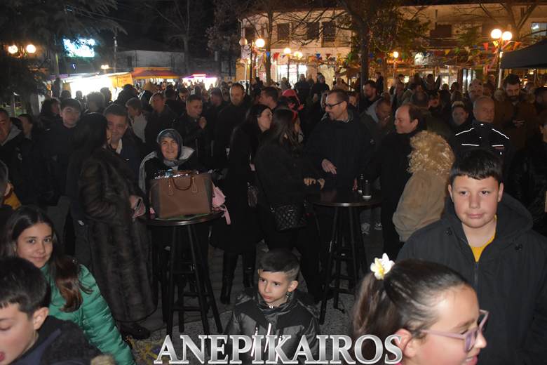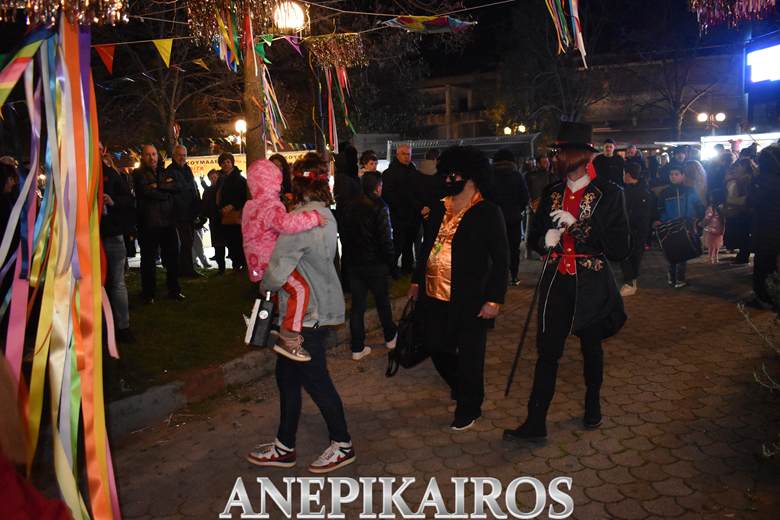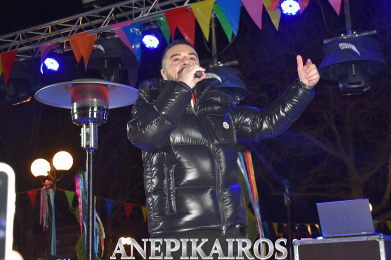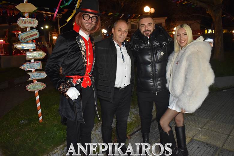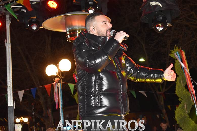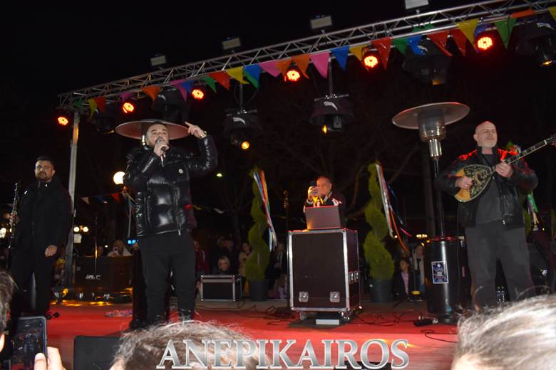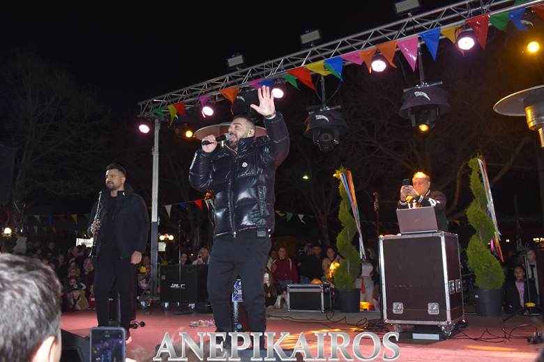 Η γιορτή ξεκίνησε λίγο πριν την εμφάνιση του γνωστού τραγουδιστή, όταν μπροστά στο Δημαρχείο στήθηκε μια μικρή αλλά εντυπωσιακή αποκριάτικη παρέλαση, με καρναβαλιστές, μουσική και κεράσματα που έδωσαν τον τόνο της βραδιάς.