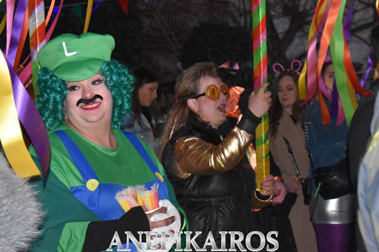 Οι συμμετέχοντες, ντυμένοι με στολές και γεμάτοι κέφι, περπάτησαν προς την κεντρική πλατεία, μεταφέροντας τον παλμό της Αποκριάς και παρασύροντας τον κόσμο σε μια ατμόσφαιρα χαράς και ξεγνοιασιάς.