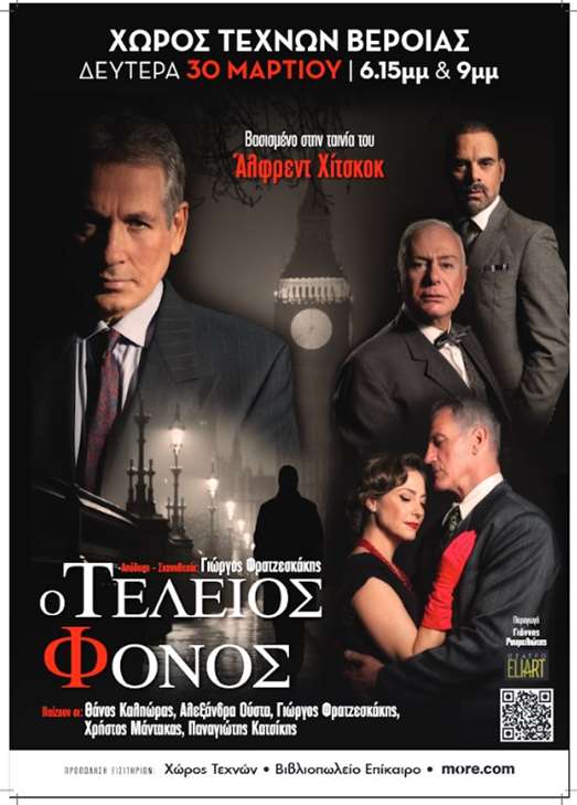 Η θεατρική παράσταση «Ο Τέλειος Φόνος», βασισμένη στο αστυνομικό θρίλερ του Φρέντερικ Νοτ, παγκοσμίως γνωστό από την κινηματογραφική μεταφορά του από τον Άλφρεντ Χίτσκοκ, παρουσιάζεται την Δευτέρα 30 Μαρτίου 2026 στον Χώρο Τεχνών –Θάνος Μικρούτσικος της ΚΕΠΑ Δήμου Βέροιας, με διπλή παράσταση 6.15μμ και 9.00 μμ. σε σκηνοθεσία Γιώργου Φρατζεσκάκη.
