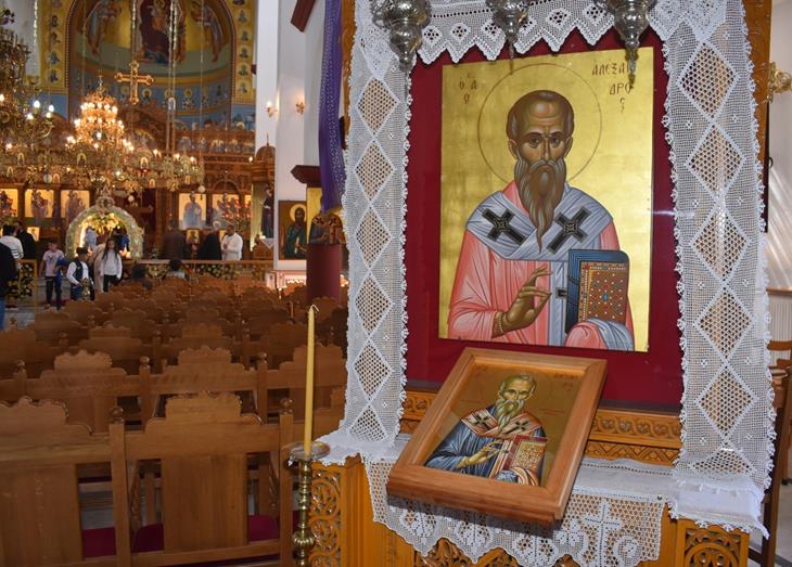 Λίγο πιο πέρα, στην ιστορική εκκλησία του Αγίου Αλεξάνδρου, η ίδια συγκινητική εικόνα επαναλαμβανόταν. Ο επιτάφιος, στολισμένος με λουλούδια που μαρτυρούσαν την αγάπη και την ευγνωμοσύνη των πιστών, δεχόταν το σεβασμό των ενοριτών. Τα πρόσωπα ήταν σκυθρωπά, αλλά γεμάτα ελπίδα για την Ανάσταση που πλησιάζει.Ξεχωριστή στιγμή η χορωδία που έψελνε τους ύμνους της Μεγάλης Παρασκευής, υπό τον πατέρα Αλέξανδρο, δίνοντας μία ξεχωριστή εικόνα στην πίστη των χριστιανών για την Ανάσταση του Χριστού.