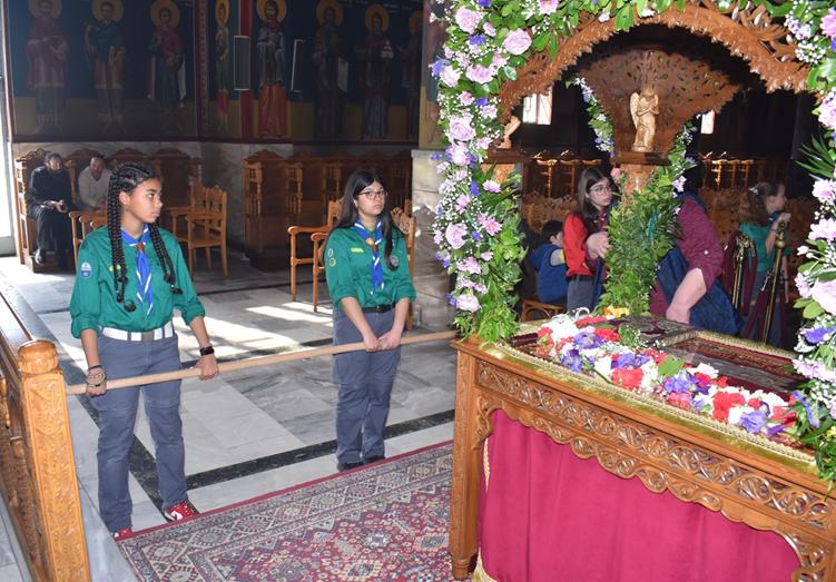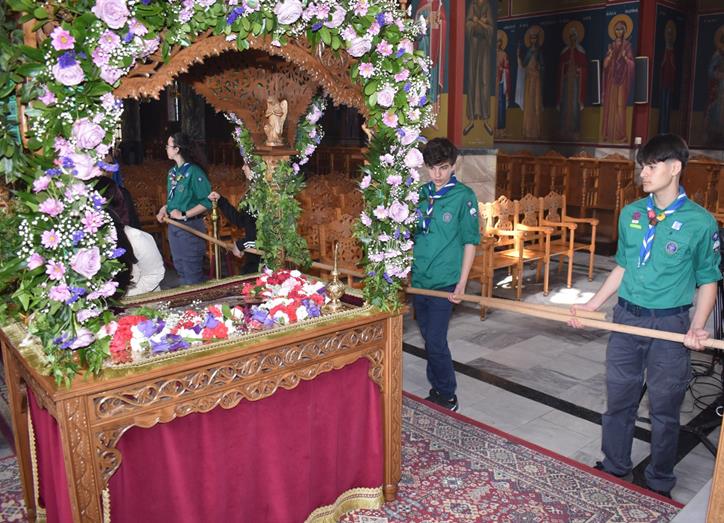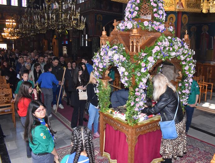 Στην ενορία των Αγίων Κυρίλλου και Μεθοδίου, από νωρίς το πρωί οι πιστοί προσκύνησαν το δράμα του Θεανθρώπου. Ο επιτάφιος, έργο τέχνης από άνθη, ήταν ένα σημείο αναφοράς για την κοινότητα, που συγκεντρώθηκε για να βιώσει μαζί το κορυφαίο γεγονός της Χριστιανοσύνης.