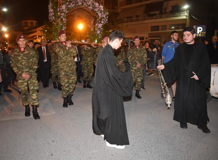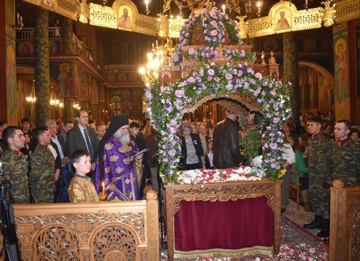Πλήθος πιστών κατέκλυσετην εκκλησία και τους δρόμους της πόλης, συνοδεύοντας με ευλάβεια τον Επιτάφιο, σε μια από τις κορυφαίες στιγμές της Μεγάλης Εβδομάδας.