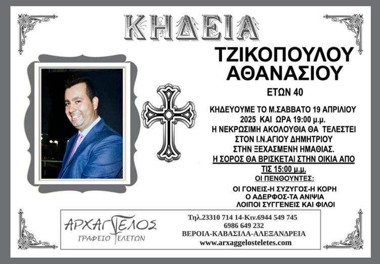 Η κηδεία του Τζικόπουλου Αθανάσιου στην Ξεχασμένη Ημαθίας το Μ. Σάββατο 19 Απριλίου 2025