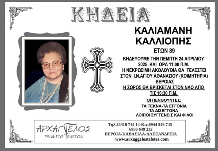 Η κηδεία της Καλιαμάνη Καλλιόπης την Πέμπτη 24 Απριλίου 2025.