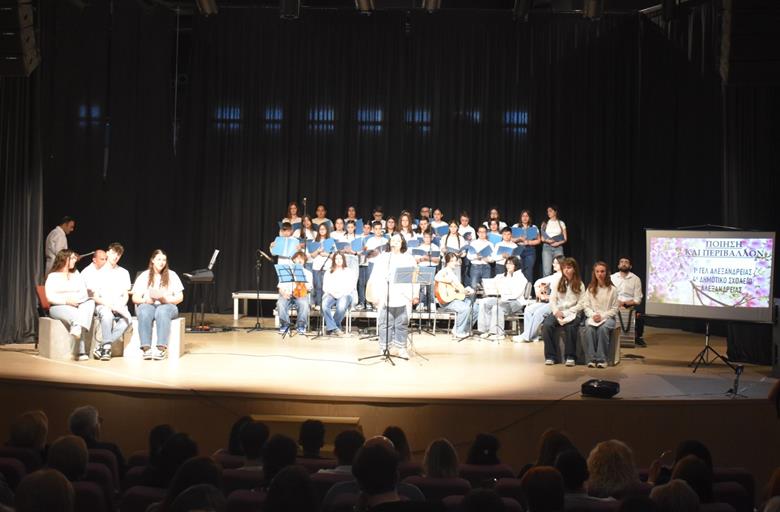 Θέμα της εκδηλωσης η ποίηση και το περιβάλλον με τους μαθητές των δύο σχολείων να συμπράττουν σε μια μοναδική συναυλία και να κερδίζουν το χειροκρότημα του κόσμου που γέμισε την αίθουσα.