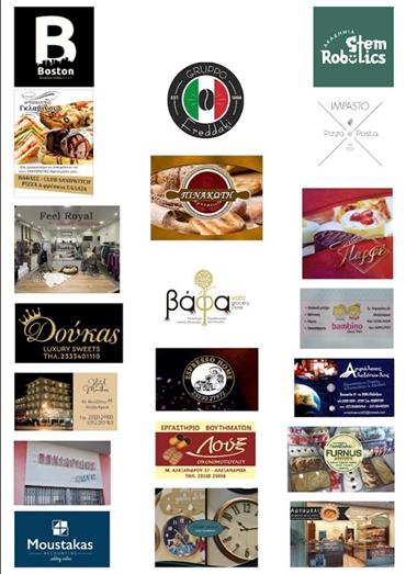 Την ακαδημία ‘Stem Robotics’, το ‘Ζαχαροπλαστείο ΠΑΡΦΕ’, το ‘HOTEL MANTHOS’, το κατάστημα ‘BAMBINO’, το εργαστήριο βουτημάτων ‘Λουξ Οικονομόπουλου’, το ‘Boston Breakfast Coffee & more’, το αρτοζαχαροπλαστείο ‘Γκλαβίνας’, το καφέ ‘ESPRESSO HOME’, το ‘αρτοποιείο ΠΙΝΑΚΩΤΗ’, το ζαχαροπλαστείο ‘DOUKAS LUXURY SWEETS’, το καφέ ‘GRUPPO Freddaki’, τον φούρνο ‘Οικογένεια Παπάζογλου Furnus’, τον φούρνο ‘Αρτομέλι’, την κάβα ‘ΠΕΚΙΑΡΙΔΗΣ’, το κατάστημα ‘Vafa grocery store’, το λογιστικό γραφείο ‘Moustakas ACCOUNTING’, τις ‘Ασφάλειες Αλεξόπουλος’, τα καταστήματα ‘Feel Royal’ και ‘Sweet Home’ της Αλίκης Σταμπουλή, την πιτσαρία ‘IMPASTO Pizza e Pasta’.