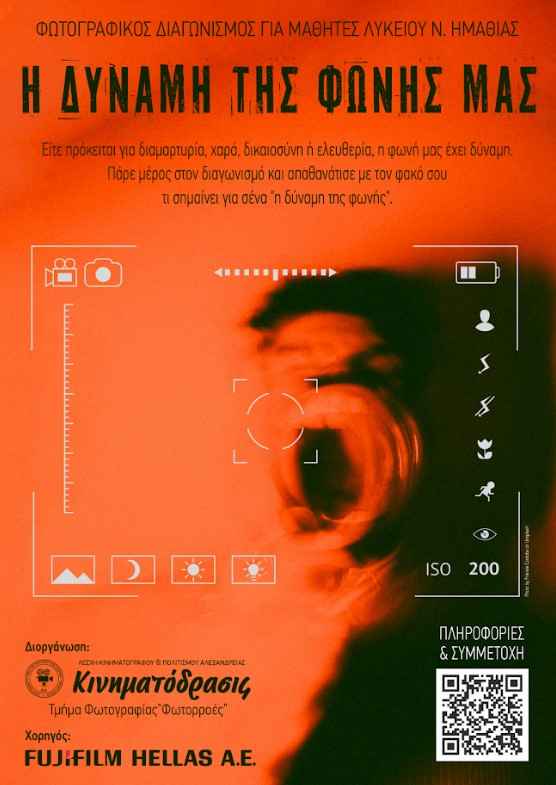 Ο διαγωνισμός φωτογραφίας απευθύνεται σε μαθητές λυκείου από σχολεία της Ημαθίας και έχει ως στόχο να αναδείξει μέσα από τον φωτογραφικό φακό την οπτική των μαθητών στο θέμα καθώς και να ενθαρρύνει τους νέους να ασχοληθούν με την τέχνη της φωτογραφίας. Οι μαθητές καλούνται να αποτυπώσουν φωτογραφικά το πώς η “φωνή” τους – κυριολεκτικά ή μεταφορικά – μπορεί να επηρεάσει τον κόσμο γύρω τους, να εμπνεύσει, να διεκδικήσει, να ενώσει ή να εκφράσει συναισθήματα.
