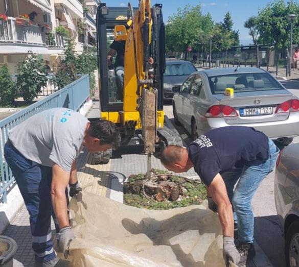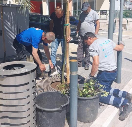 με τα συνεργεία των υπαλλήλων της Διεύθυνσης Περιβάλλοντος να προχωρούν σε νέες φυτεύσεις δέντρων σε κενές δενδροδόχους, κατά μήκος της οδού Ανοίξεως.