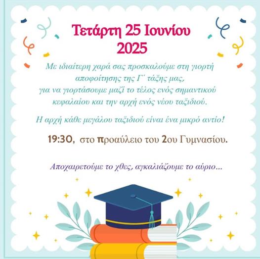 Τελετή αποφοίτησης των μαθητών της Γ΄ τάξης του 2ου Γυμνασίου Αλεξάνδρειας.