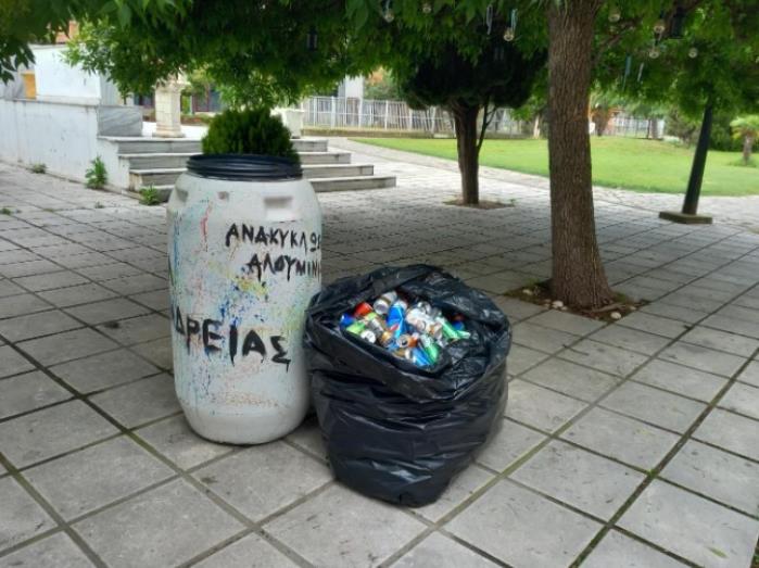 Σήμερα θα παρουσιάσουμε, μέσα από εικόνες, τη διαδικασία συλλογής και ανακύκλωσης συσκευασιών αλουμινίου (κουτάκια μπύρας και αναψυκτικών). Μια προσπάθεια που βρίσκει ανταπόκριση και πραγματοποιείται όχι μόνο στο σχολικό περιβάλλον αλλά και στον αστικό ιστό της πόλης, αφού ειδικοί κάδοι - βαρέλια έχουν τοποθετηθεί σε κεντρικά σημεία της πόλης, όπου οι συμπολίτες μας αποθέτουν σε αυτά τις συσκευασίες αλουμινίου για ανακύκλωση. Οι κάδοι είναι τοποθετημένοι σε σημεία της Βετσοπούλου, ενδεικτικά αναφέρουμε: στη γωνία με Παύλου Μελά, στην Τράπεζα Πειραιώς, πίσω από τον Σύλλογο Ποντίων, στην ALFA BANK και σε άλλα σημεία.