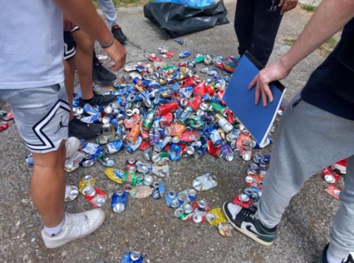 Κάδοι εναπόθεσης και ποσότητα από κουτάκια που συγκεντρώθηκε σε σημεία της Αλεξάνδρειας με τη συμμετοχή των μαθητών της Α΄ τάξης.