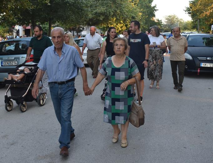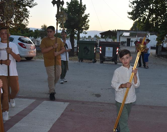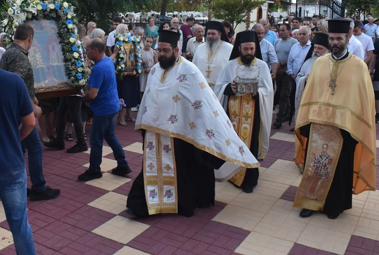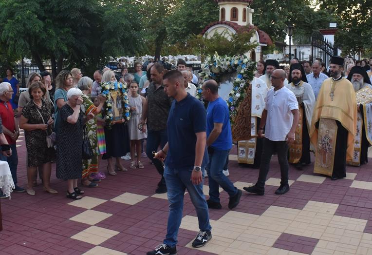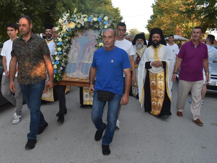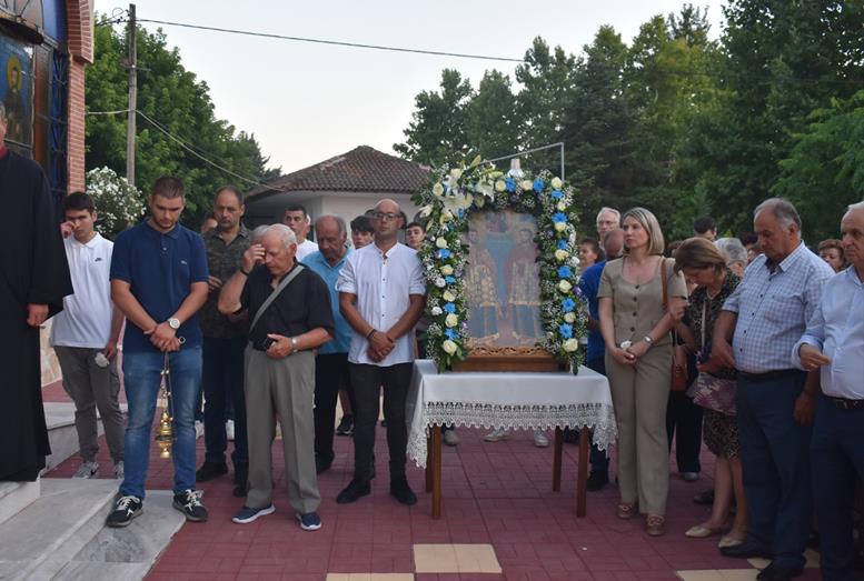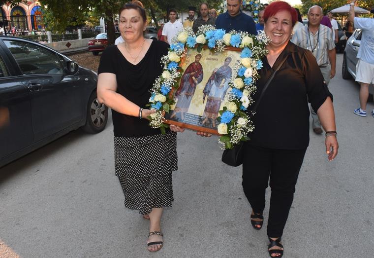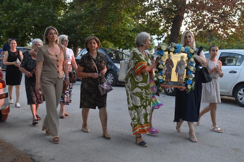 Μετά το πέρας του Εσπερινού, πραγματοποιήθηκε η καθιερωμένη περιφορά της Ιεράς Εικόνας των Αγίων στους δρόμους του χωριού, με τη συνοδεία και τη συμμετοχή πλήθους πιστών που ακολουθούσαν με ευλάβεια.