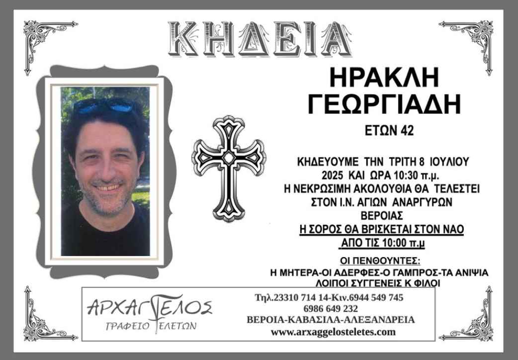 Η κηδεία του Ηρακλή Γεωργιάδη την Τρίτη 8 Ιουλίου 2025