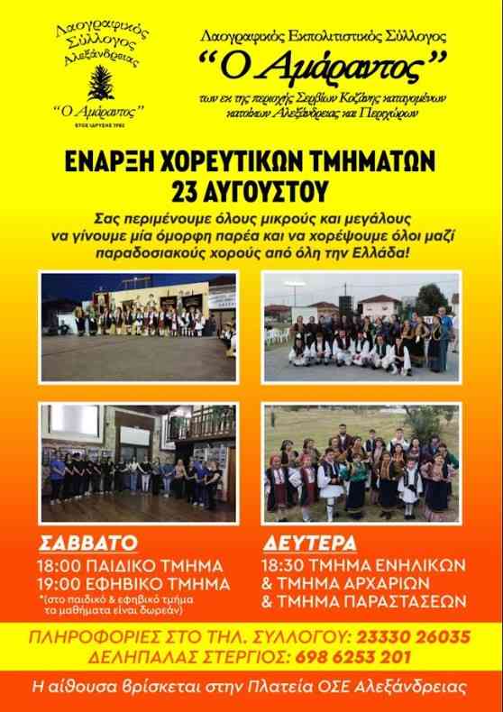 Λαογραφικός Εκπολιτιστικός Σύλλογος “Ο Αμάραντος” των εκ της περιοχής Σερβίων Κοζάνης καταγομένων κατοίκων. Αλεξάνδρειας και Περιχώρων