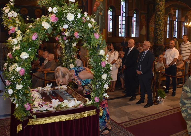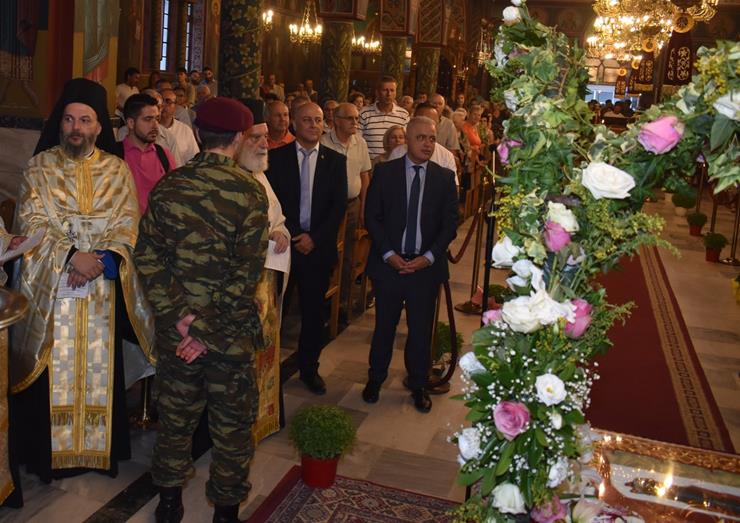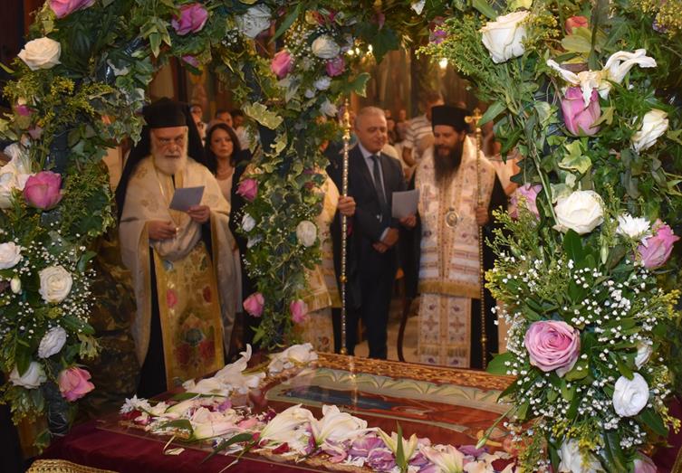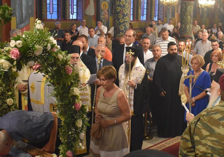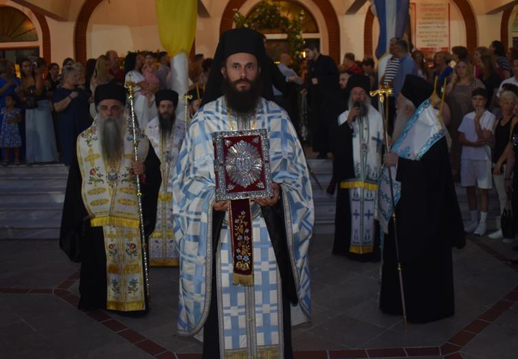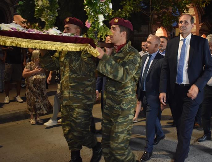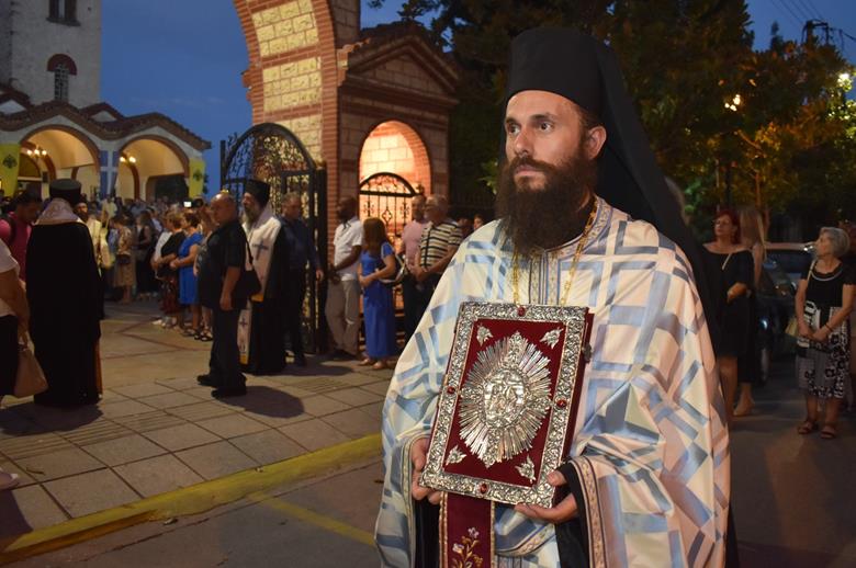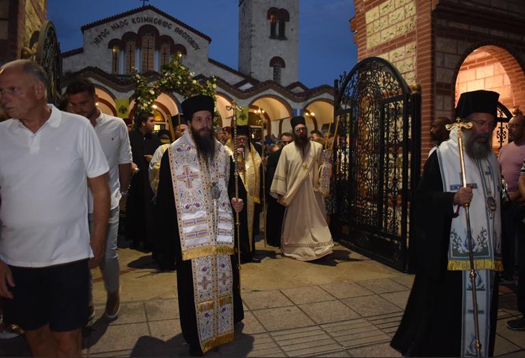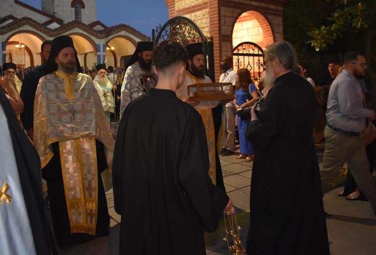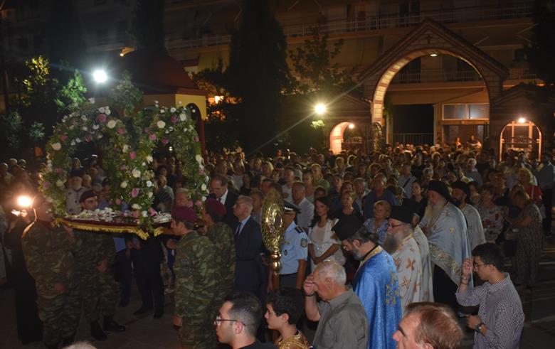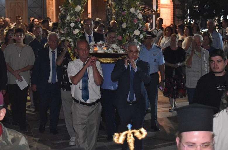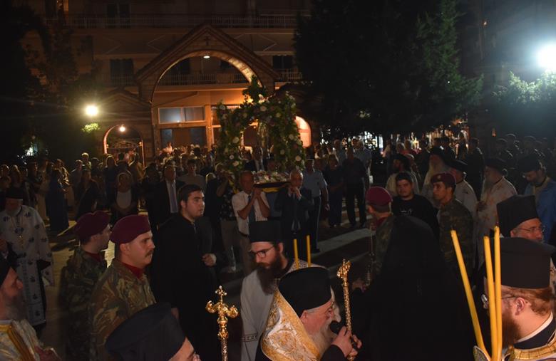 Ακολούθησε Ιερά Λιτανεία του Επιταφίου της Παναγίας στους δρόμους της πόλεως, με τη συμμετοχή τοπικών πολιτικών και στρατιωτικών αρχών και πλήθους ευσεβών πιστών, ενώ της εκκλησιαστικής τάξεως επιμελήθηκε εντός του Ιερού Ναού ο Αρχιερατικός Επίτροπος Αλεξανδρείας και προϊστάμενος του πανηγυρίζοντος Ιερού Ναού Αρχιμ. Διονύσιος Ανθόπουλος και κατά την ιερά Λιτανεία ο Αρχιμ. Παντελεήμων Παπαεμμανουήλ.