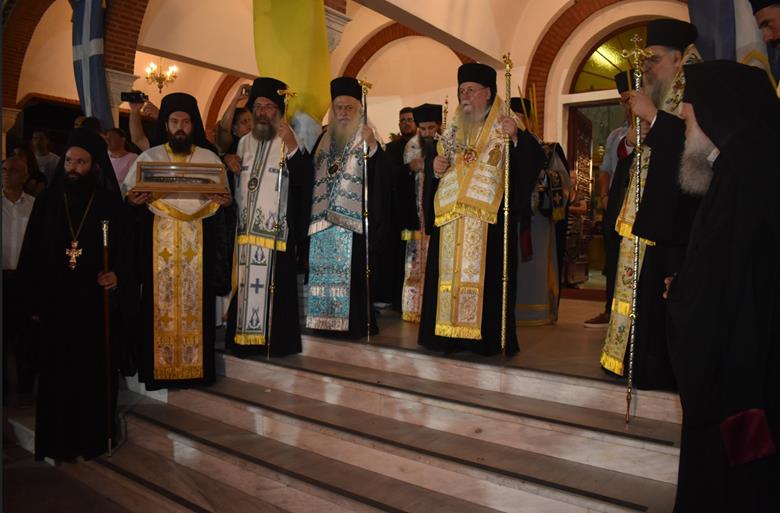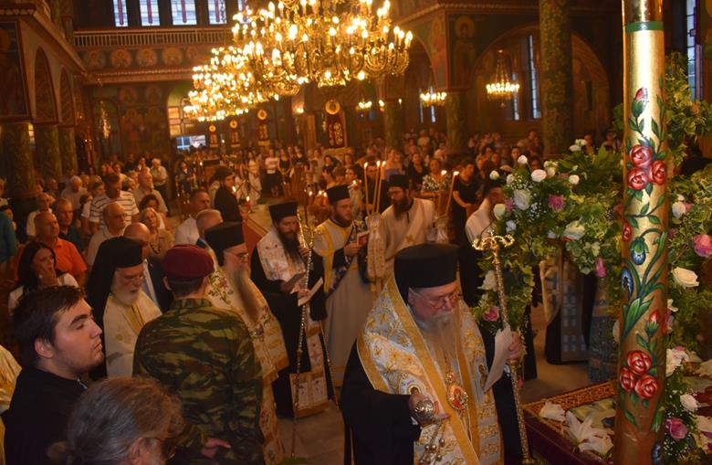 Το εσπέρας της Παρασκευής, 15ης Αυγούστου, στον πανηγυρίζοντα Ιερό Μητροπολιτικό Ναό Κοιμήσεως της Θεοτόκου Αλεξανδρείας, όπως κάθε χρόνο, τελέστηκε Μεθεόρτιος Πανηγυρικός Εσπερινός και στη συνέχεια εψάλησαν τα εγκώμια προς την Υπεραγία Θεοτόκο.