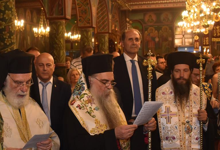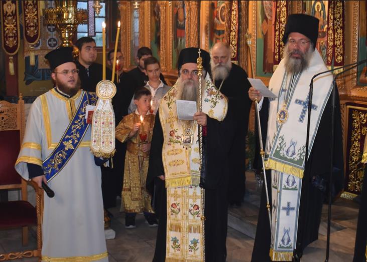 Στον Πολυαρχιερατικό Εσπερινό χοροστάτησε ο Σεβασμιώτατος Μητροπολίτης Σισανίου και Σιατίστης κ. Αθανάσιος και συμμετείχαν οι Σεβασμιώτατοι Μητροπολίτες Φιλίππων, Νεαπόλεως και Θάσου κ. Στέφανος, Ρεθύμνης και Αυλοποτάμου κ. Πρόδρομος, ο οποίος κήρυξε τον θείο λόγο, ο Θεοφιλέστατος Επίσκοπος Αλμωπίας κ. Στέφανος και ο Ποιμενάρχης μας, Σεβασμιώτατος Μητροπολίτης Βεροίας, Ναούσης και Καμπανίας κ. Παντελεήμων.