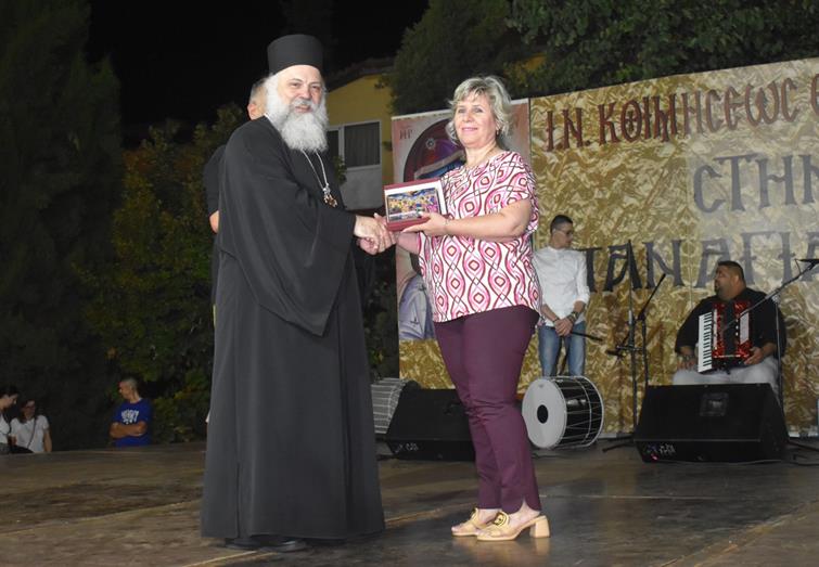 Στο τέλος της βραδιάς, δόθηκαν αναμνηστικά στους πολιτιστικούς συλλόγους που συμμετείχαν, ως ένδειξη ευγνωμοσύνης για την προσφορά τους. Επίσης, τιμητική πλακέτα απονεμήθηκε στον κ. Μάκη Φιλιππόπουλο, ως αναγνώριση της πολύτιμης συνεισφοράς του στα πολιτιστικά δρώμενα του Ιερού Ναού.