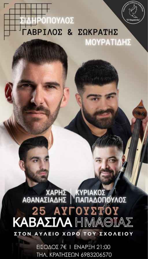 Ο πολιτιστικός σύλλογος Καβασίλων 'Ο Χαμαετός' ετοιμάζει ένα αξέχαστο ποντιακό γλέντι στα Καβάσιλα Ημαθίας με τον καταπληκτικό Sidiropoulos Gabrilos , όπου μας υπόσχεται μια φανταστική μουσική βραδιά.